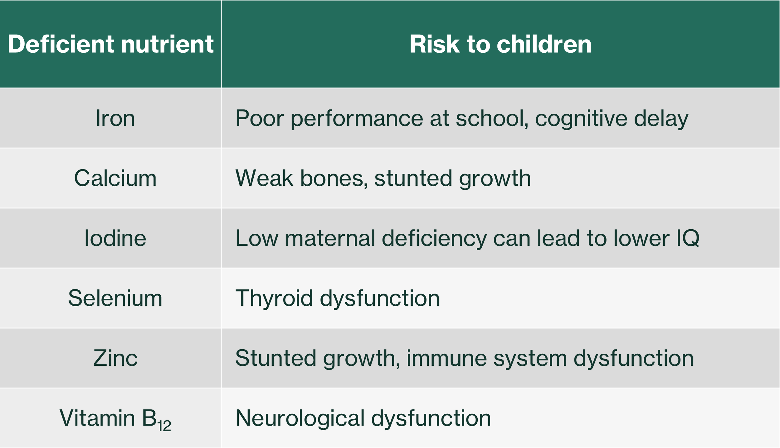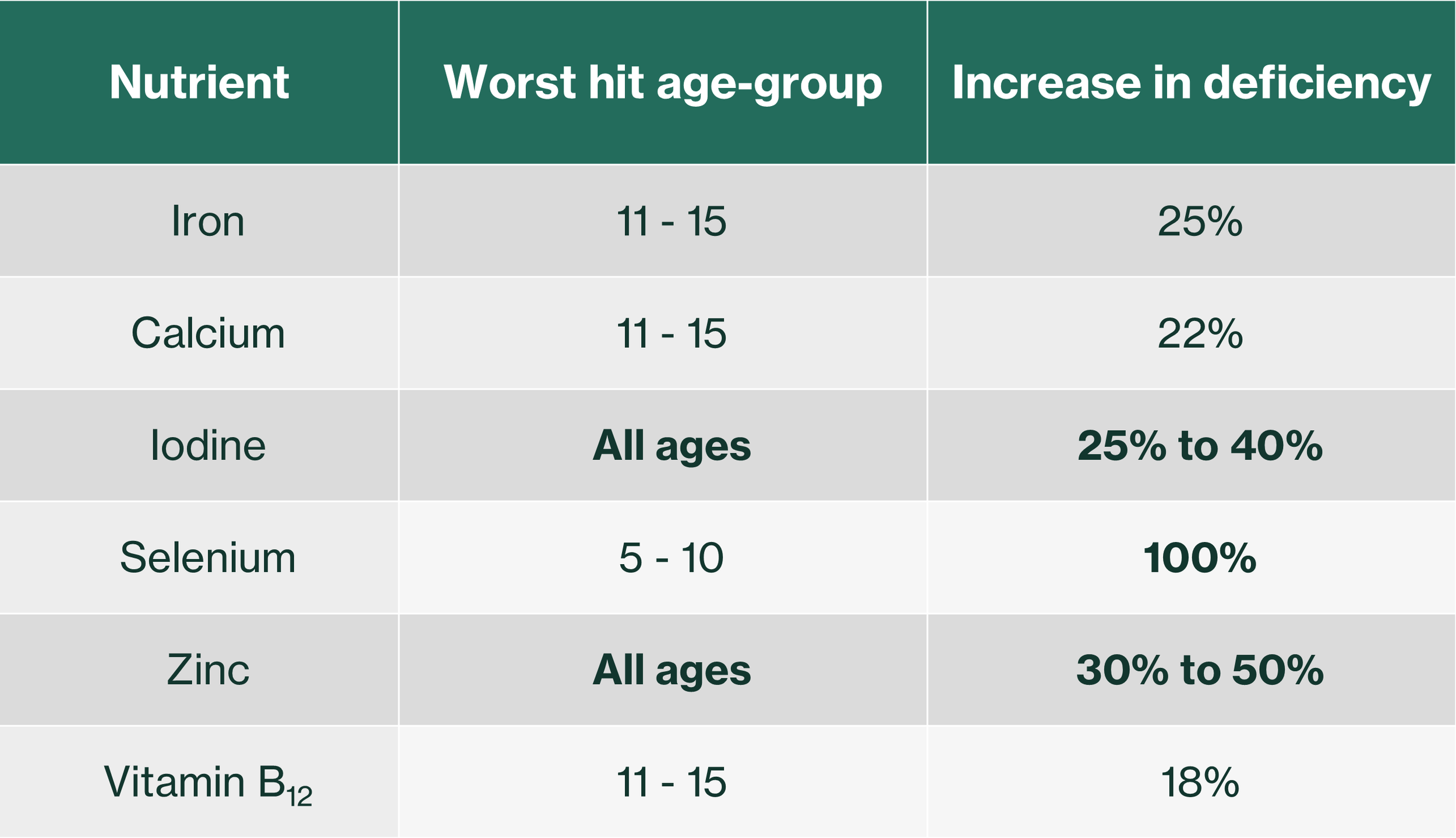 This study shows two things. As things stand, many Scottish children suffer from a lack of essential dietary micronutrients. Secondly, reducing the amount of meat and dairy consumed by children in Scotland, is likely to make existing malnutrition worse.