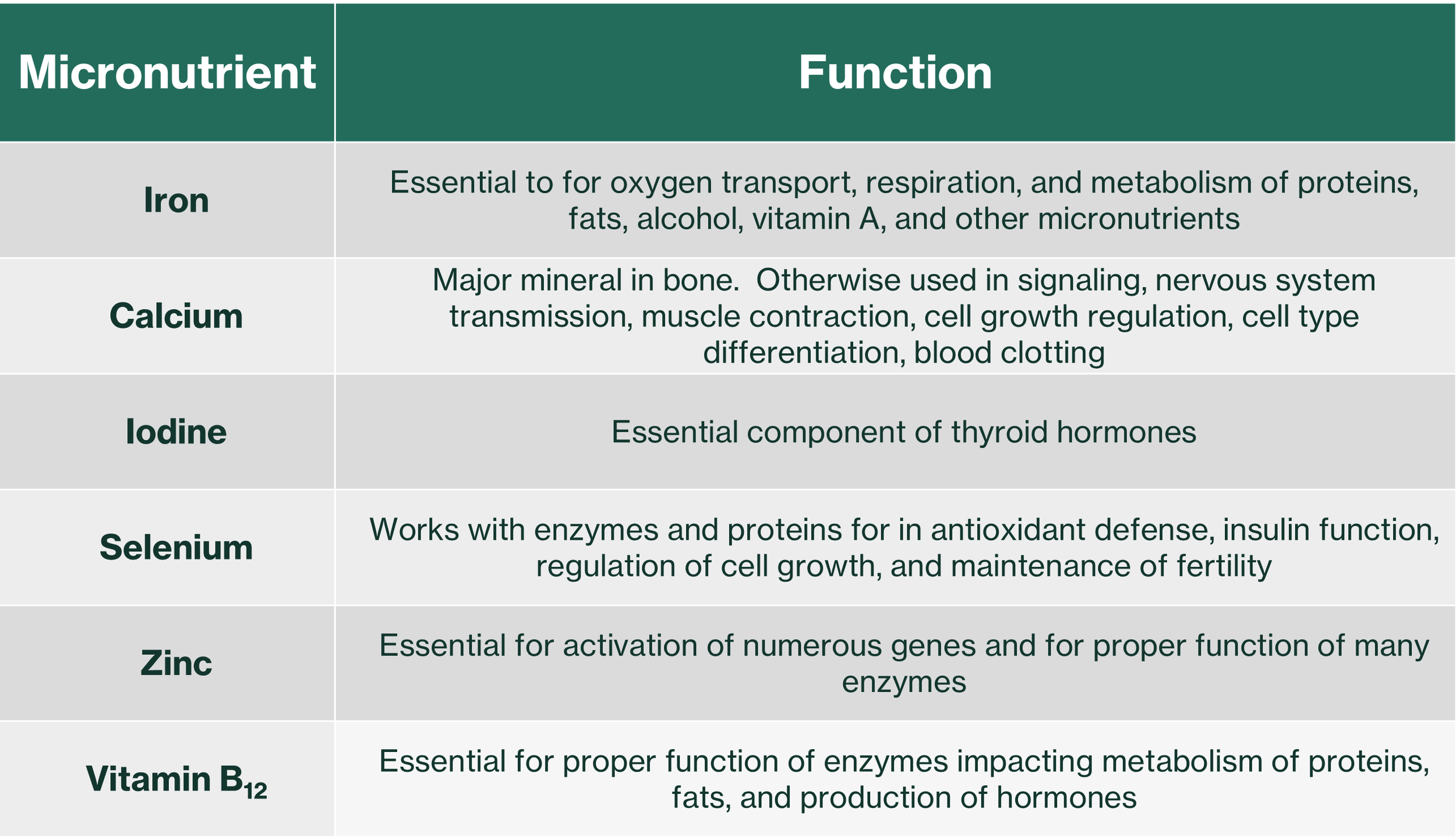 Table 2: The functions of micronutrients primarily derived from meat- and dairy-based food